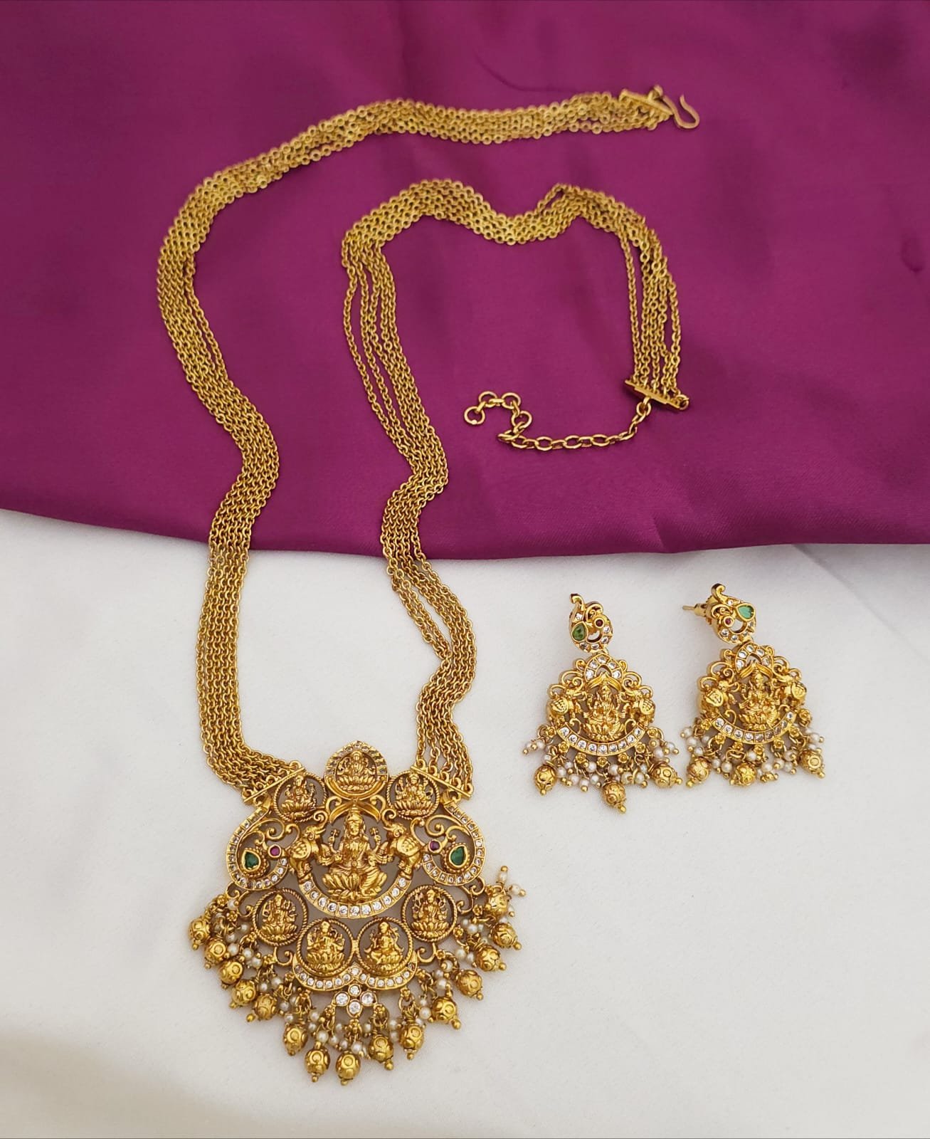 Be the first to review “30 inches antique gold chandraharam with earrings” Cancel reply