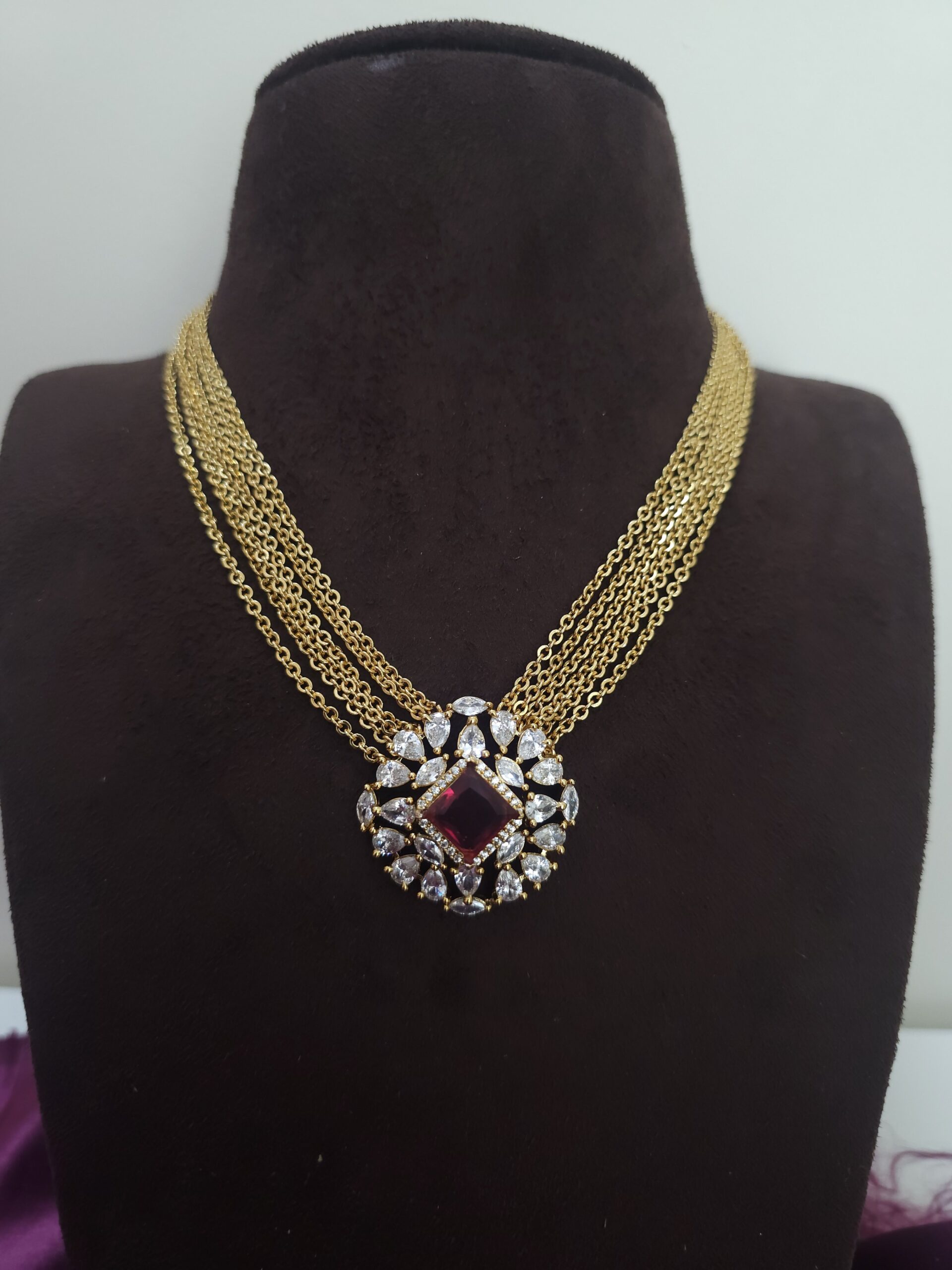 Be the first to review “Chandraharam neck chain pink mix red stone”