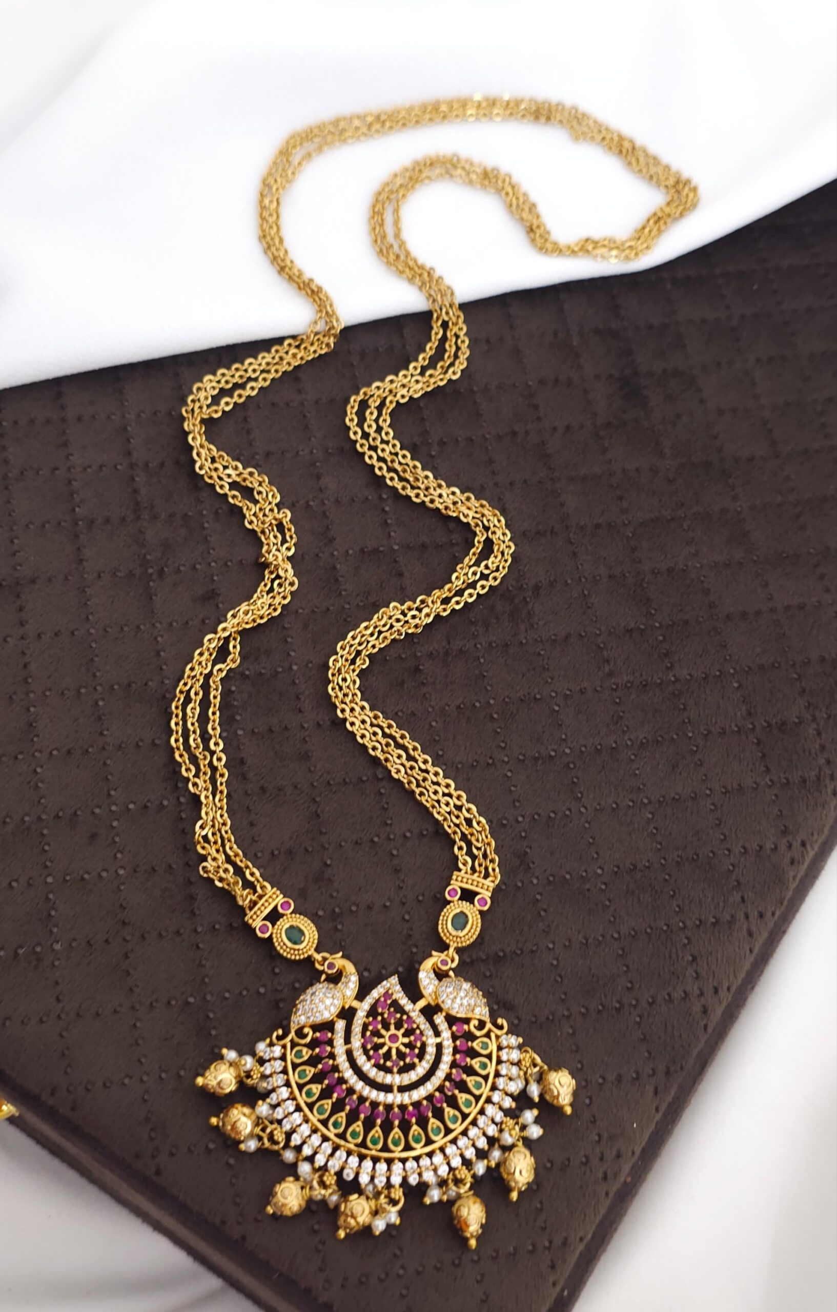 30 inches nakshi long chandraharam customized with green beads 1450 free shipping