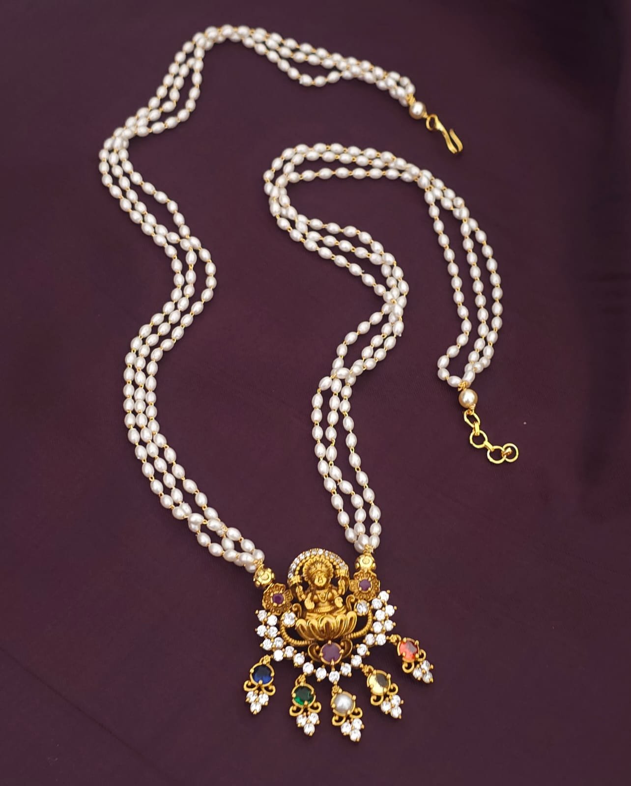 Handmade rice pearl mala nakshi locket 750 free shipping