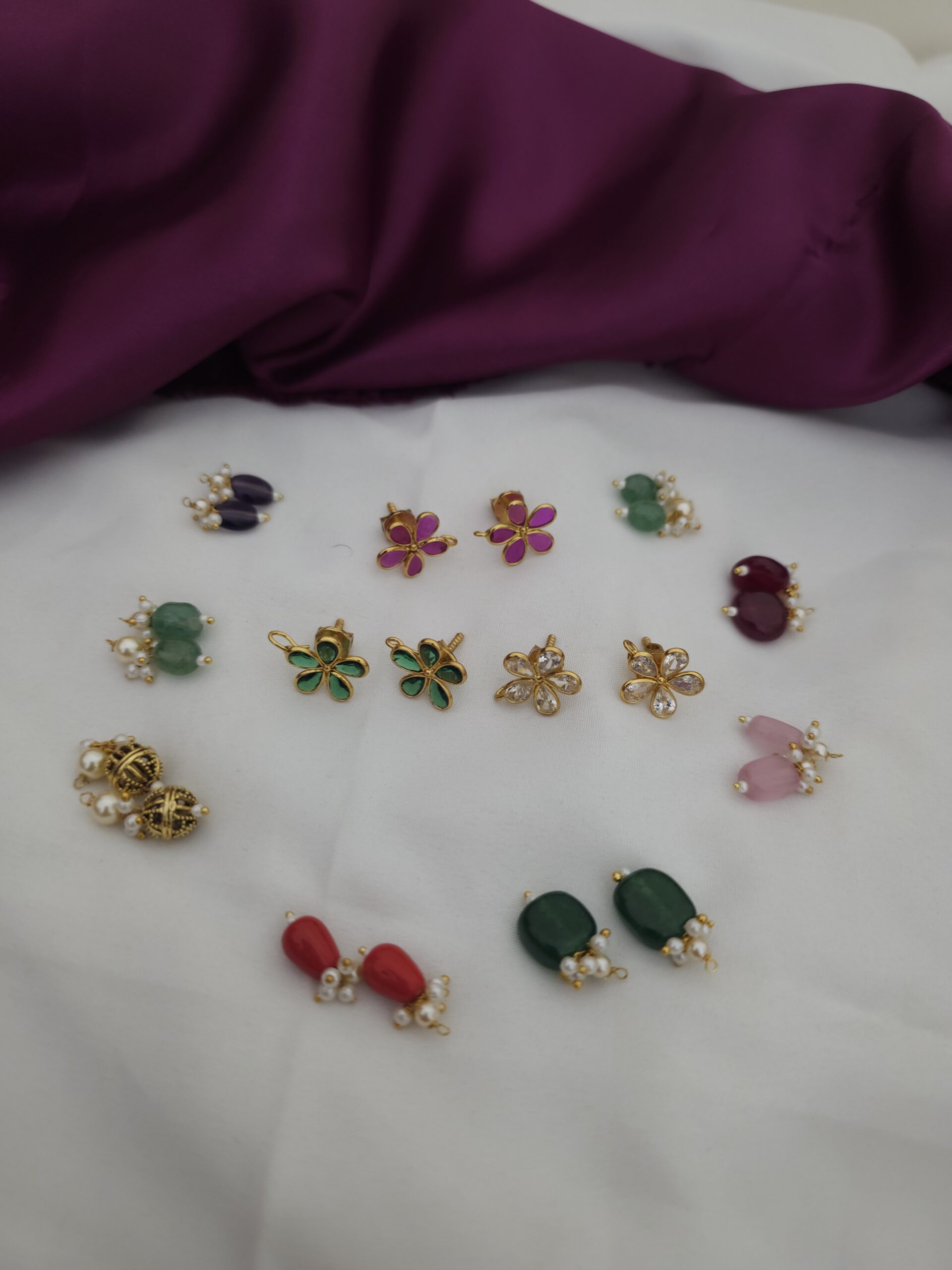 Be the first to review “Changeable eartops with 3 polki stone studs” Cancel reply