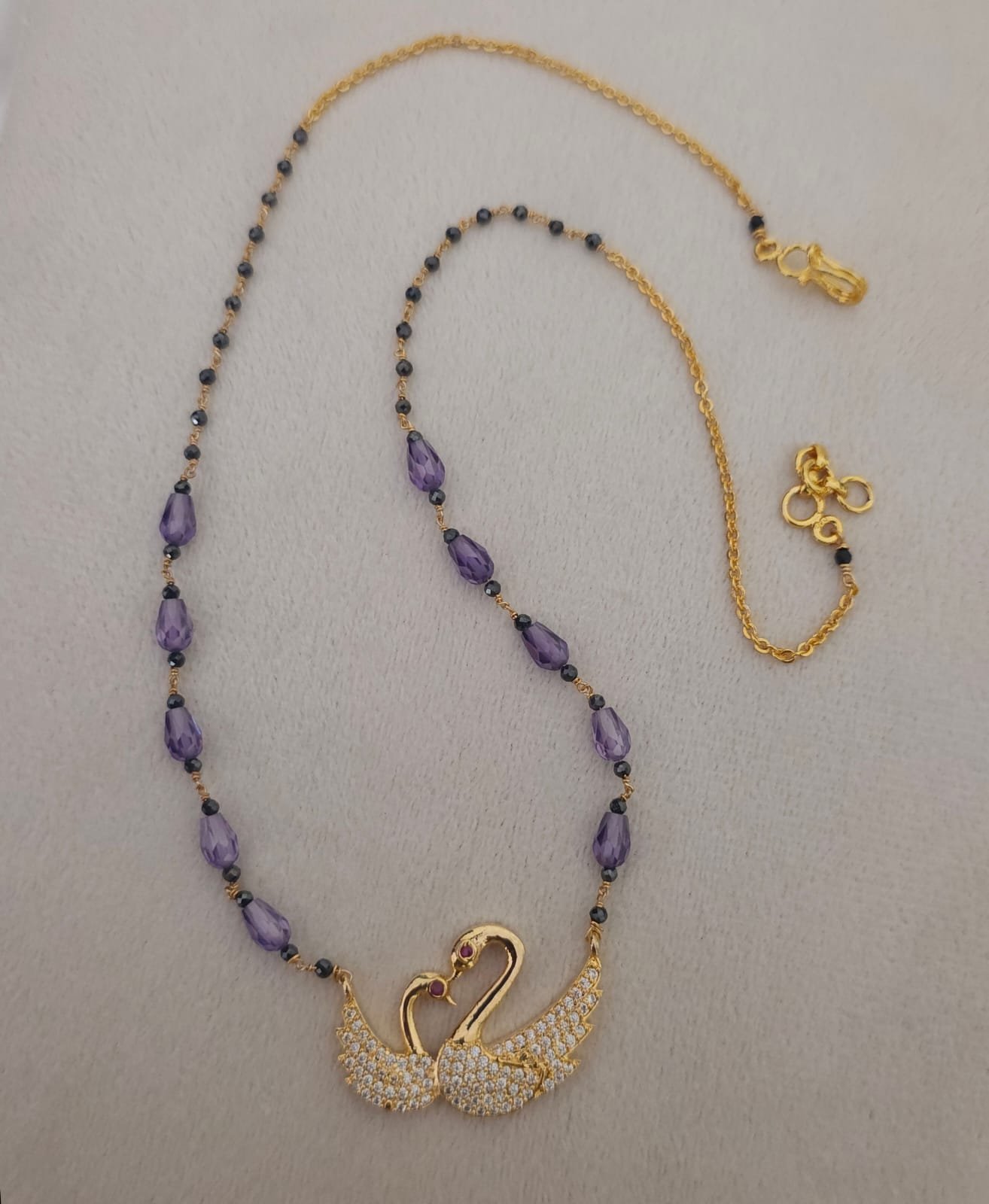 Be the first to review “Handmade kattutheega and black dimonds purple drops with swan locket 899 free shipping” Cancel reply